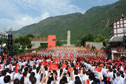 本次歌詠大匯共分為《紅色·記憶》、《天塹·通途》、《和諧·歡歌》三大篇章,現場展演的《七律·長征》、《歌唱二郎山》、《好兒好女好江山》等19個歌舞節(jié)目,全面展示了甘孜光榮的革命歷史、多彩的民俗文化、巨大的發(fā)展變化。