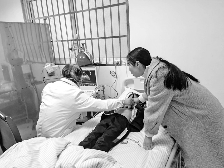 圖為醫(yī)生正在為先心病患者進(jìn)行檢查。