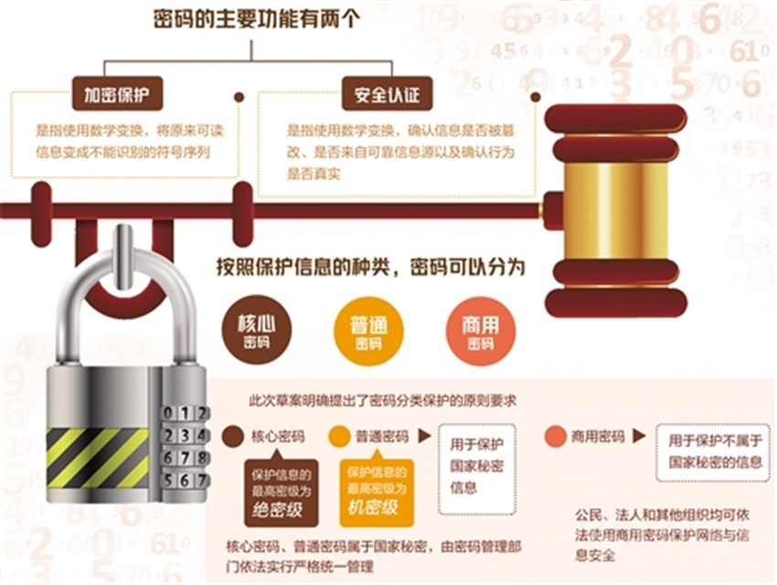 專家表示,密碼是保障網絡與信息安全的核心技術和基礎支撐,是解決網絡與信息安全問題最有效、最可靠、最經濟的手段。