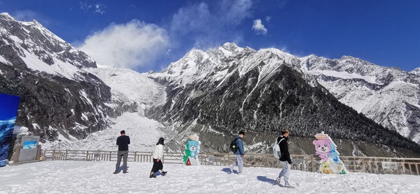 “前天從網(wǎng)上看到海螺溝景區(qū)即將開放的信息,別提多帶勁兒了。這次疫情發(fā)生就一直在家呆著,悶太久了,就想著疫情可控可防的時候,一定要來川西走走,剛好海螺溝離成都車程近,網(wǎng)絡(luò)風(fēng)評也是有口皆碑的?!边h(yuǎn)道而來的寧波游客吳先生目之所及盡是玉樹瓊枝、銀裝素裹的雪原冰川風(fēng)光,激動不已地說:“透透氣、玩玩雪、泡泡湯,回歸自然的感覺真太好了!”