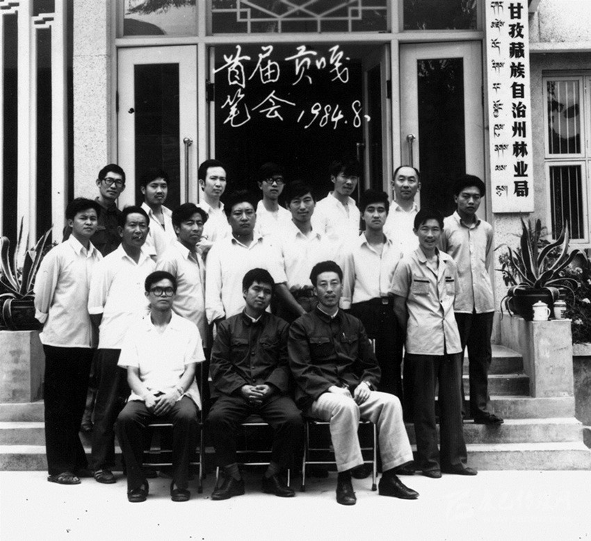 我們也在籌備,這就是《貢嘎山》雜志創(chuàng)辦以來(lái)的第一次筆會(huì)。根據(jù)當(dāng)時(shí)我州作者的創(chuàng)作情況,編輯們商議決定搞一次筆會(huì),這次筆會(huì)以小說(shuō)創(chuàng)作為主。當(dāng)時(shí)我州的詩(shī)歌創(chuàng)作非?;钴S,很多從學(xué)校出來(lái)參加工作的年青作者都很喜歡詩(shī)歌創(chuàng)作,創(chuàng)作水平也還不錯(cuò),而且還活躍著很多的文學(xué)社團(tuán),散文寫作的人也不少,唯獨(dú)就是小說(shuō)創(chuàng)作始終在作者人數(shù)和質(zhì)量上都達(dá)不到刊物的要求。針對(duì)這種現(xiàn)狀,我們對(duì)當(dāng)時(shí)發(fā)表和寫過(guò)小說(shuō)的所有作者都進(jìn)行統(tǒng)計(jì),并發(fā)出了參加筆會(huì)的約稿信,并決定1984年8月在康定姑咱鎮(zhèn)林業(yè)管理局招待所舉辦首屆《貢嘎山》筆會(huì),通過(guò)近一年的準(zhǔn)備,檢視作者來(lái)稿情況確定了18位作者(一名女作者)參加首屆《貢嘎山》筆會(huì),他們是仁真旺杰、高旭帆、胡杰、劉富貴、王浩東、宋濤、格妮措、杜仁信、王方霖、劉述義、孫浩東、牟子、朱長(zhǎng)安等,郭昌平參加了開(kāi)班后有事走了,給我們留下這張珍貴的合影照片。