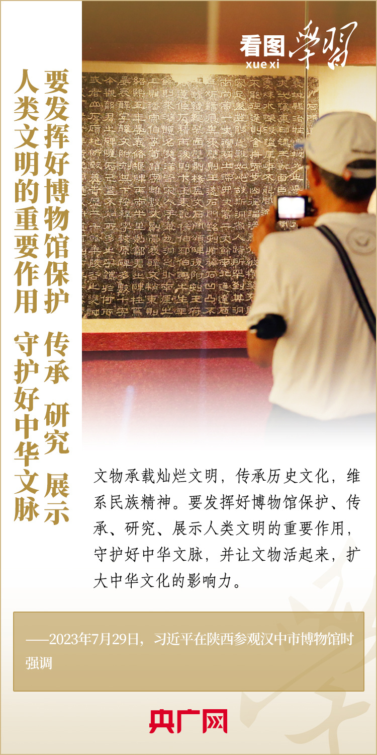 “一座博物館就是一所大學(xué)?!薄安┪镳^很重要,我從小就愛看博物館,小時(shí)候北京的博物館我差不多都看過了”“博物館建設(shè)要更完善、更成體系,同時(shí)發(fā)揮好博物館的教育功能”……在國內(nèi)考察中,習(xí)近平總書記曾經(jīng)多次走進(jìn)當(dāng)?shù)夭┪镳^,了解館藏文物的收藏、保護(hù)、研究情況,對博物館建設(shè)和利用作出重要指示。一起來學(xué)習(xí)!