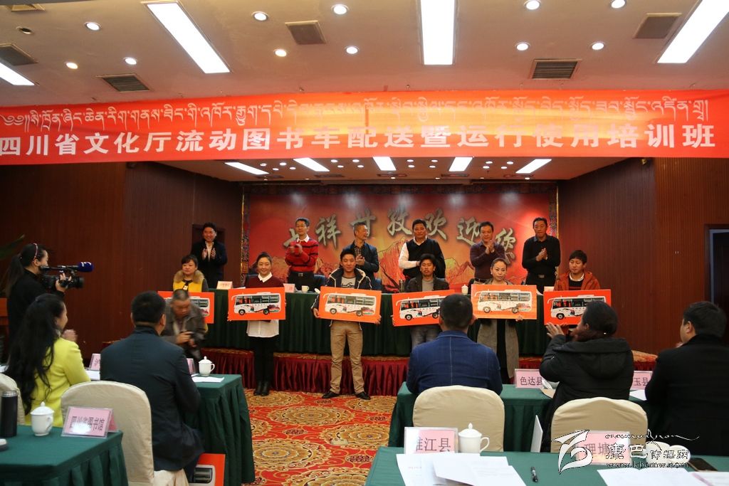 本網(wǎng)訊(記者 宋志勇文/圖)10月13日,四川省文化廳流動(dòng)圖書車配送暨運(yùn)行使用培訓(xùn)會(huì)在康定市舉行,共為我州配送流動(dòng)圖書服務(wù)車18輛。省文化廳副廳長向華全,州委常委、宣傳部長相洛,省文化廳財(cái)務(wù)處處長潘沛等出席并為18個(gè)縣(市)發(fā)放了車鑰匙。