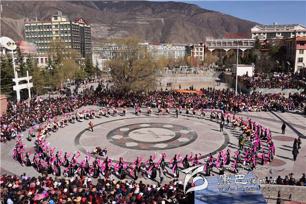 本網(wǎng)訊 (羅凌 志瑪 /文 王娟 多吉澤仁/圖)2月10日正值大年初三,高原江南巴塘陽光燦爛,喜慶祥和。該縣夏邛鎮(zhèn)13個行政村組成8個表演隊,1000余名農民演員穿著節(jié)日的盛裝,到中山廣場參加“巴塘縣(夏邛鎮(zhèn))2016年迎新春暨藏歷火猴年原生態(tài)非遺文化展演”活動。