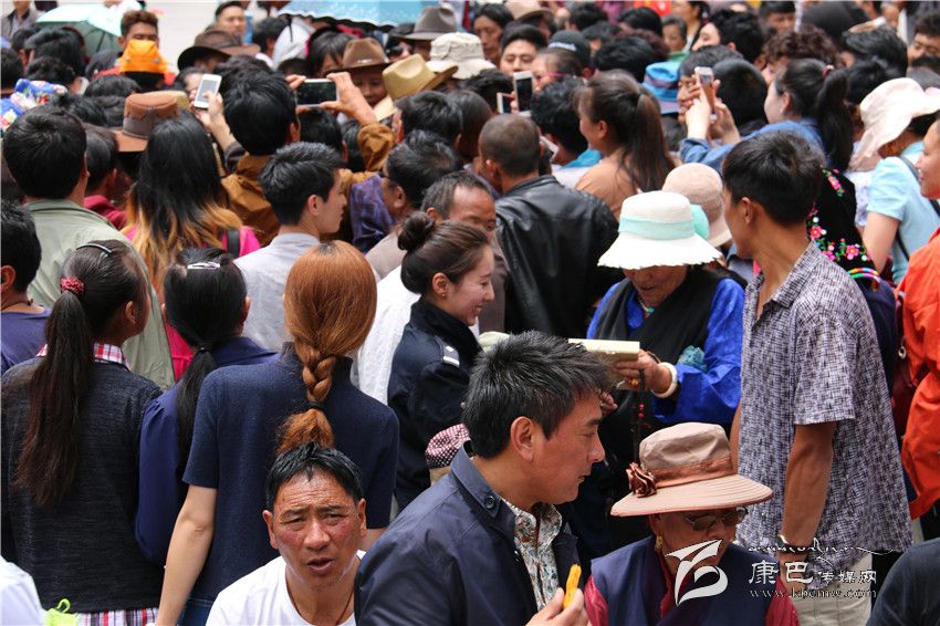 儀式上,當(dāng)擁金措、貢桑吉和布姆分別演唱了《世紀(jì)情白玉夢(mèng)》、《欽諾》和《康巴之戀》時(shí),場(chǎng)下掌聲不斷。接著,當(dāng)州民族歌舞團(tuán)的小伙們跳起歡快的《踢踏》時(shí),在場(chǎng)的觀眾立刻與之互動(dòng),并不時(shí)爆發(fā)出熱烈掌聲。