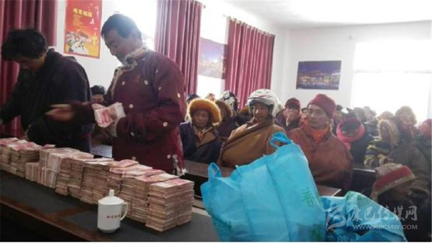 俄達(dá)門(mén)巴村民現(xiàn)場(chǎng)領(lǐng)取分紅款。