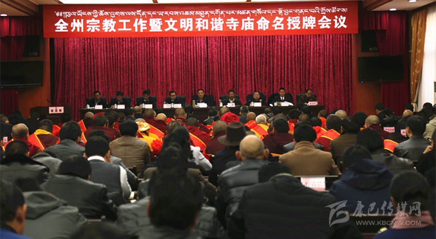 本網(wǎng)訊(記者 楊杰 文/圖)3月28日,全州宗教工作暨文明和諧寺廟命名授牌會(huì)議在康定召開。會(huì)議深入學(xué)習(xí)貫徹全國、全省宗教工作會(huì)議精神,深化對(duì)做好新形勢下宗教工作重大意義的認(rèn)識(shí),總結(jié)經(jīng)驗(yàn)、查找不足、部署工作,提升全州宗教事務(wù)依法管理水平,引導(dǎo)宗教與社會(huì)主義社會(huì)相適應(yīng)。會(huì)議對(duì)2016年達(dá)標(biāo)升級(jí)的文明和諧寺廟進(jìn)行了命名授牌。州委書記劉成鳴出席會(huì)議并講話,州政協(xié)主席向秋出席會(huì)議。