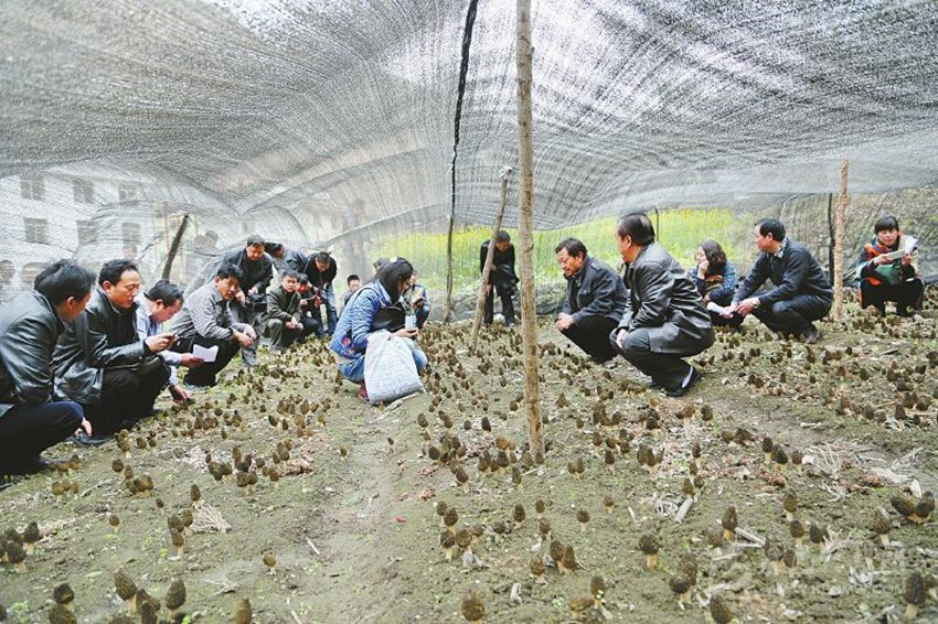 瀘定縣羊肚菌豐產(chǎn)采收。