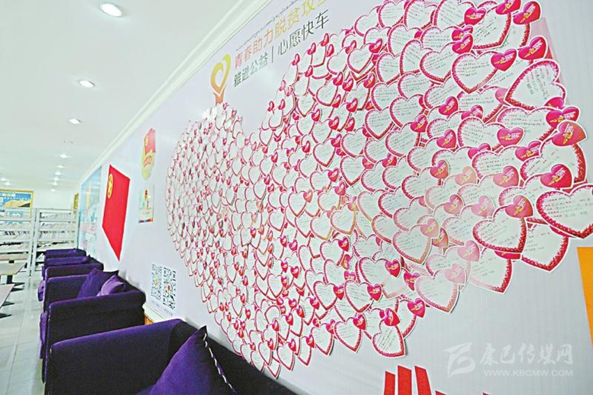 位于海螺溝景區(qū)管理局大廳的“雅遜心愿快車”公益項(xiàng)目“愛心墻”。