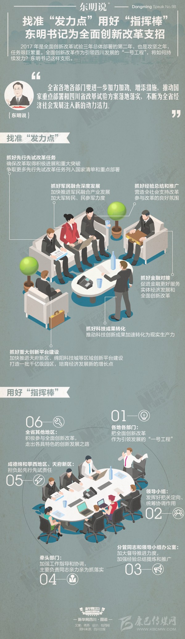2017年是全面創(chuàng)新改革試驗三年總體部署的第二年,也是攻堅之年,任務艱巨繁重。全面創(chuàng)新改革作為引領四川發(fā)展的“一號工程”,將如何持續(xù)發(fā)力?王東明書記這樣支招。