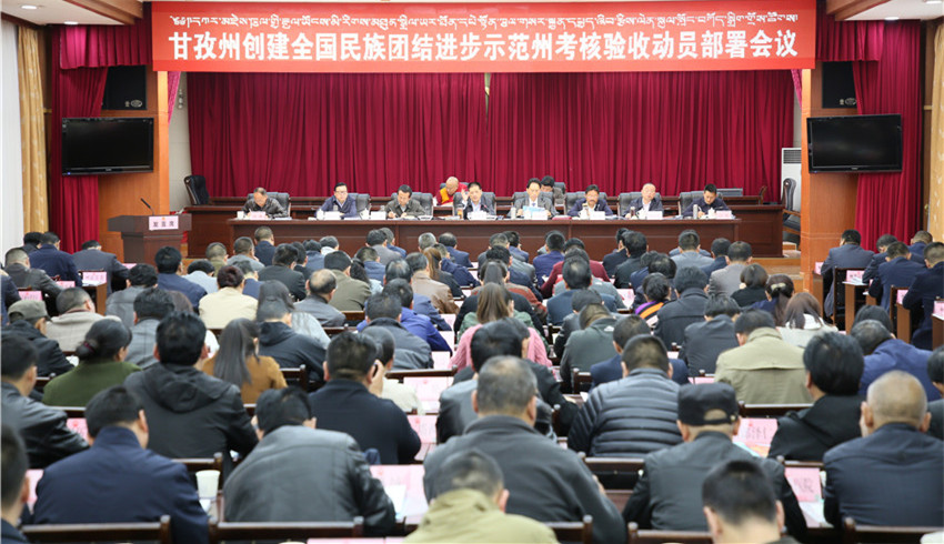 本網(wǎng)訊 近日,我州創(chuàng)建全國(guó)民族團(tuán)結(jié)進(jìn)步示范州考核驗(yàn)收動(dòng)員會(huì)在康定召開。州委書記劉成鳴出席會(huì)議并講話。他強(qiáng)調(diào),全州上下要以黨的十九大、習(xí)近平總書記關(guān)于民族工作系列重要講話和省委書記彭清華來(lái)州視察調(diào)研重要講話精神為指引,準(zhǔn)確把握全州民族工作面臨的新情況新問(wèn)題,不斷加強(qiáng)和深化民族團(tuán)結(jié)進(jìn)步創(chuàng)建活動(dòng),不斷團(tuán)結(jié)凝聚起全州各族群眾力量,為同步全面建成小康社會(huì),打下堅(jiān)實(shí)基礎(chǔ),營(yíng)造良好環(huán)境,提供不懈動(dòng)力。州委副書記、州長(zhǎng)肖友才主持會(huì)議,州人大常委會(huì)主任李康、州政協(xié)主席向秋出席會(huì)議。
