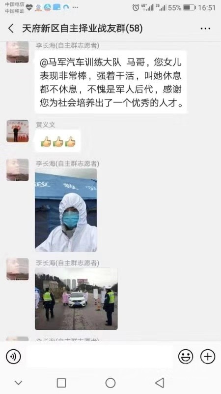 “我給我女兒報名,馬相汶,女,25歲,大學(xué)畢業(yè),北京工作,現(xiàn)滯留成都,另我回去后接她的班?!苯眨粭l微信截圖傳遍了天府新區(qū)退役軍人的朋友圈。