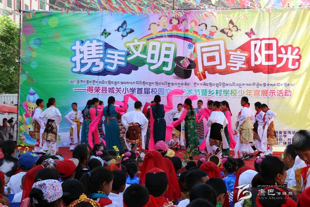 本網(wǎng)訊(得榮宣傳部)5月29日,得榮縣城關(guān)小學(xué)內(nèi)彩旗飄飄,學(xué)校師生、學(xué)生家長(zhǎng)近1000人歡聚在校園。由縣委宣傳部、團(tuán)縣委、縣教育局、城關(guān)小學(xué)聯(lián)合舉辦的“首屆少兒藝術(shù)節(jié)暨鄉(xiāng)村學(xué)校少年宮展演”在這里歡樂(lè)開(kāi)幕。