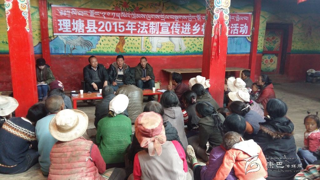 為營造“人人學(xué)法、全民守法”的濃厚氛圍,理塘縣依托群眾工作全覆蓋及精準(zhǔn)扶貧工作,通過廣播電視播放公告、城市廣場懸掛標(biāo)語、出租車頂播放宣傳標(biāo)語等方式加大宣傳力度。并于2015年11月從全縣機(jī)關(guān)單位抽調(diào)57名懂雙語、責(zé)任心強(qiáng)、具有一定法學(xué)素養(yǎng)的人員組成6個(gè)宣講組,分別在全縣214個(gè)行政村及對(duì)縣城各鄉(xiāng)搬遷戶進(jìn)行集中宣傳。