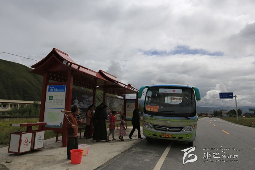 甘孜縣公交車開進(jìn)鄉(xiāng)村。