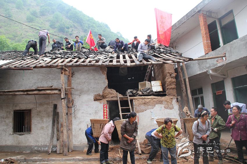 黨員突擊隊幫助災(zāi)區(qū)群眾恢復(fù)受損房屋。