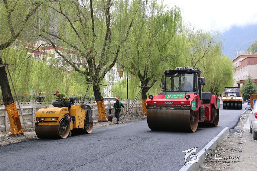記者在下橋的一個溫馨提示牌上看到這樣的提示:“施工期間請大家注意安全,給你們帶來出行和生活上的不便敬請諒解,感謝各位的支持和理解。”記者沿折多河順流而下,在濱河路上看到,大型瀝青攤鋪機、壓路機一起行動,現(xiàn)場一派熱火朝天的景象。“現(xiàn)在鋪筑的是第一層瀝青,也是最關(guān)鍵的一道工序,必須要保證路面厚度、平整度。”正在負責監(jiān)督路面質(zhì)量的四川康立監(jiān)理公司員工田雪鋒對記者說。