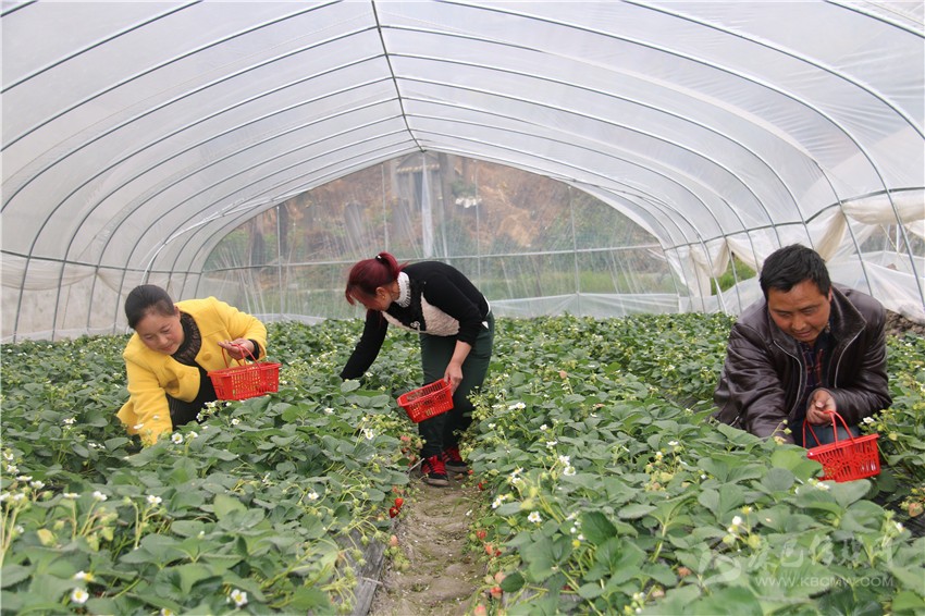 沈村依山靠河,省道217線穿村而過,區(qū)位和資源優(yōu)勢明顯,非常適宜發(fā)展種植業(yè)。早在大棚草莓種植之前,該村有人種植過露天草莓,但長勢不好、品質(zhì)差。根據(jù)當(dāng)?shù)氐乃临Y源,李天林多方考察,向成都百安公司學(xué)習(xí)大棚草莓種植技術(shù),引進(jìn)草莓改良品種,因地制宜發(fā)展優(yōu)勢產(chǎn)業(yè),帶動(dòng)村民們增收致富。