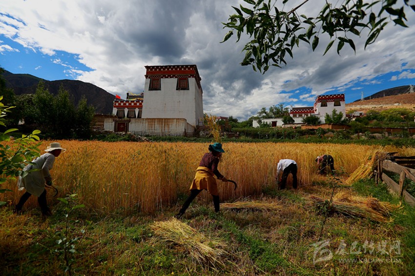 在青德鎮(zhèn)的田地里,隨處可見百姓忙碌收割的身影。熱龔村村民洛絨擁中雖然已忙得滿頭大汗,但是喜悅之情卻溢于言表,她說,由于今年風(fēng)調(diào)雨順,家里種植的青稞和小麥?zhǔn)粘杀韧暌?,趁這幾天天氣晴好抓緊搶收。筆者在地里看到,有不少收割完的農(nóng)戶正在幫助缺少勞動力的家庭,大家相互協(xié)作確保顆粒歸倉。據(jù)了解, 今年鄉(xiāng)城縣小麥和青稞種植面積達3萬余畝,長勢普遍較好。