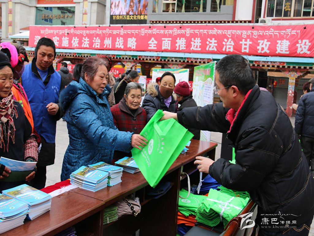 ●3月11日,由州環(huán)境保護局牽頭,州農業(yè)畜牧局、州旅游局、州發(fā)改委、州林業(yè)局、州國土資源局、州文體廣局以及康定縣環(huán)境保護局聯(lián)合舉辦的 “3·11”生態(tài)日宣傳活動在情歌廣場上舉行。州政府副州長杜德清來到宣傳現(xiàn)場,和工作人員一同為前來咨詢的市民發(fā)放資料。