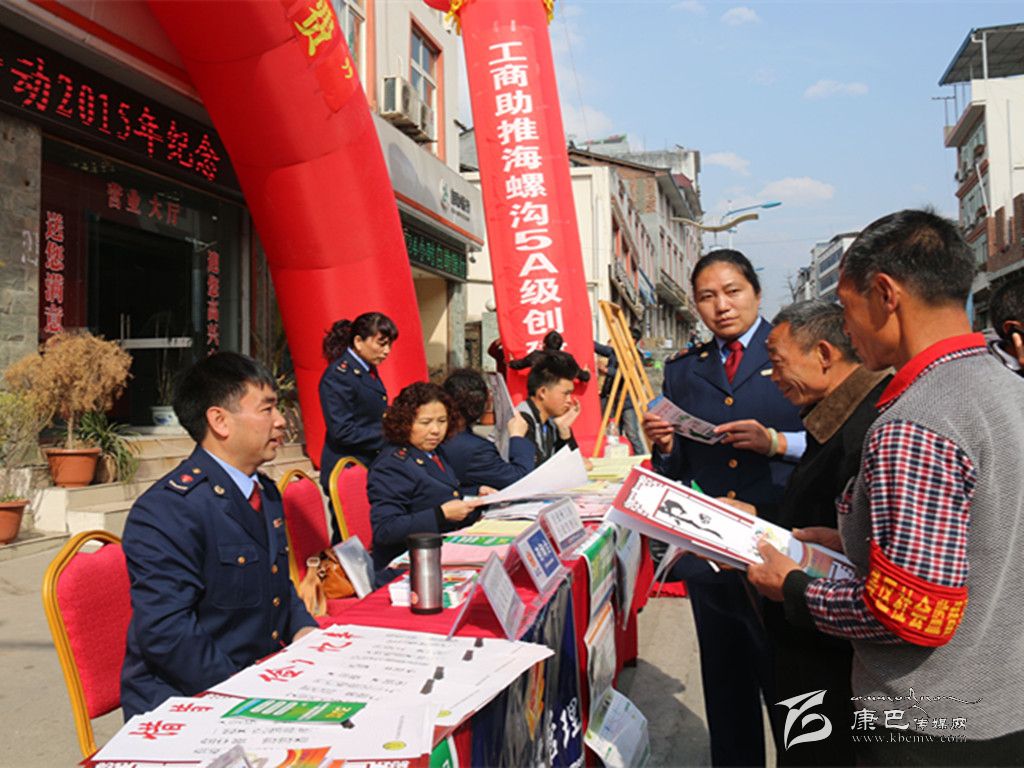 本網(wǎng)訊(州工商局 文/圖)為貫徹州政府5A級景區(qū)創(chuàng)建工作推進會議精神,州工商局積極謀劃、主動作為,以“3·15國際消費者權(quán)益日”紀念活動為契機,以走進海螺溝景區(qū)、貼近民營經(jīng)濟為載體,全力助推海螺溝5A景區(qū)創(chuàng)建工作。