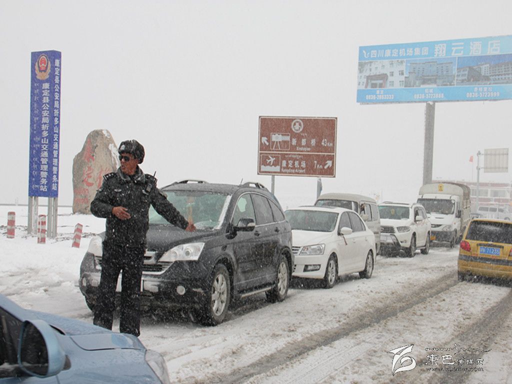 去年10月3日,華西都市報(bào)收到了讀者傳來(lái)的一張圖片,照片上的交警穿著厚厚的大衣,背景白雪皚皚。“這是我今天翻折多山的時(shí)候照的,當(dāng)時(shí)車(chē)子排隊(duì)翻山遇到堵車(chē)心里覺(jué)得毛焦火辣的,我當(dāng)時(shí)看到他站在暴雪中指揮交通,心里就像吃了定心丸,我要為這個(gè)交警點(diǎn)贊。”華西都市報(bào)記者尋著這條線索多方打探,終于聯(lián)系到了康定縣公安局交警大隊(duì)新都橋中隊(duì)長(zhǎng)王洛讓。