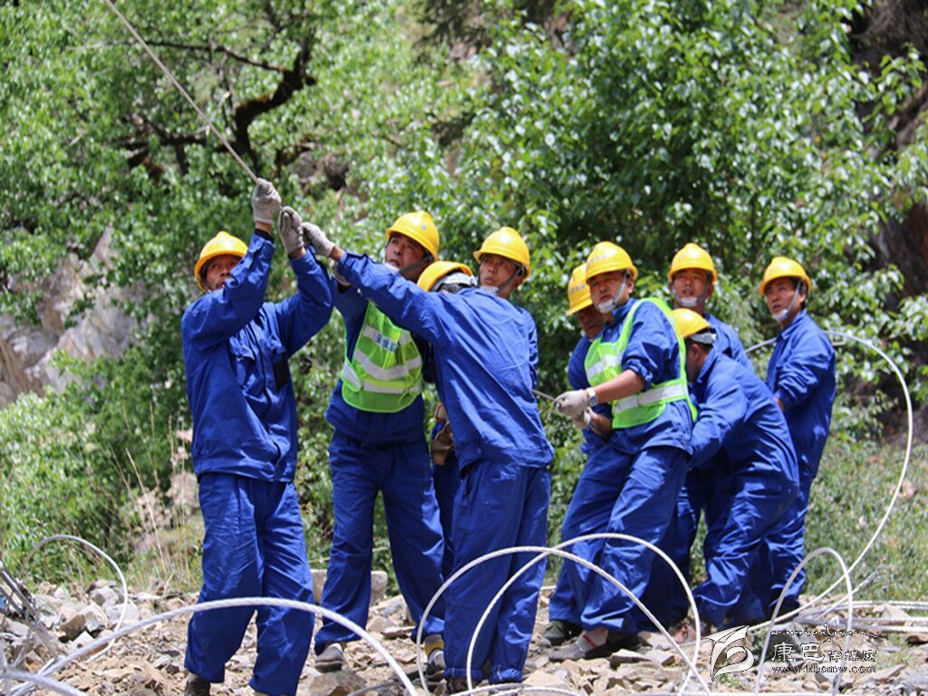 為了圓農(nóng)牧民通電夢,甘電公司誓要打好“決戰(zhàn)年”戰(zhàn)役。山高、路難、溝深、水急是今年無電區(qū)電力建設(shè)現(xiàn)場的真實(shí)寫照。在甘孜高原上奮斗著來自參建的監(jiān)理、建設(shè)和施工單位共計15支隊伍,他們和高原惡劣的氣候抗衡著,他們用“奮斗”二字譜寫著一首“電力人之歌”,為無電地區(qū)的藏族百姓早日通電打好了“決戰(zhàn)年”的戰(zhàn)役。在甘孜州各縣條件艱苦的無電地區(qū)工程建設(shè)點(diǎn),隨處可見身著國網(wǎng)標(biāo)志的身影。在色達(dá)、甘孜、石渠、理塘、巴塘、雅江等邊遠(yuǎn)的“無電地區(qū)”施工現(xiàn)場,電力建設(shè)者們,頂寒風(fēng),斗冰雪,與惡劣環(huán)境抗衡,立塔架線,每天早出晚歸,完成一項(xiàng)又一項(xiàng)“難啃”的工程,夜晚燒堆篝火取暖,次日再次奔赴施工現(xiàn)場。這樣的“辛苦”記者在采訪過程中也見到。在雅江縣德差鄉(xiāng),手握對講機(jī),身穿工裝的工程項(xiàng)目負(fù)責(zé)人龍森和他所以在的工程隊的工人們每天都是頂著烈日、冒著風(fēng)雨加班加點(diǎn)在趕工程進(jìn)度,幾個月下來,有的工人身上被太陽曬掉了幾層皮??墒撬麄儚膩頉]有喊一聲苦,喊一聲累,晴天一身汗,雨天一身泥,每到一個點(diǎn)都出色完成了任務(wù)。在困難和辛苦面前,龍森和工人師傅堅定的說:“再苦再累我們也受得了,只要老百姓能盡快用上電做什么都值得。這段路線的電桿已經(jīng)全部立起來了,現(xiàn)在只剩下架線的工作。我們一定要在月底之前為這兩個村通上電。”