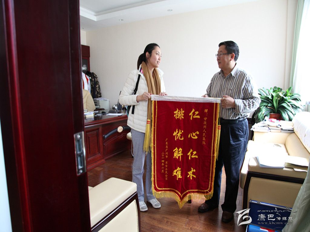 多吉院長代表醫(yī)院接受來自廣州的肖女士贈(zèng)送的錦旗。