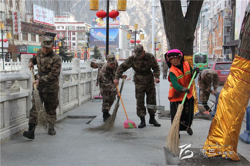 情歌廣場(chǎng),官兵們鏟除冰雪,除去塵土垃圾,留下一片潔凈美好;福利院里,官兵們?yōu)槔先藵{洗衣物、打掃衛(wèi)生、理發(fā)洗頭,忙得不亦樂乎。幾位女兵還專門為老人們送去了自編自演的節(jié)目,這個(gè)“一家人”的溫馨聚會(huì),讓老人們倍感高興、倍感溫暖。而此刻,遠(yuǎn)在道孚的分區(qū)部隊(duì)某營(yíng)官兵的愛民助民活動(dòng)也進(jìn)行的如火如荼。