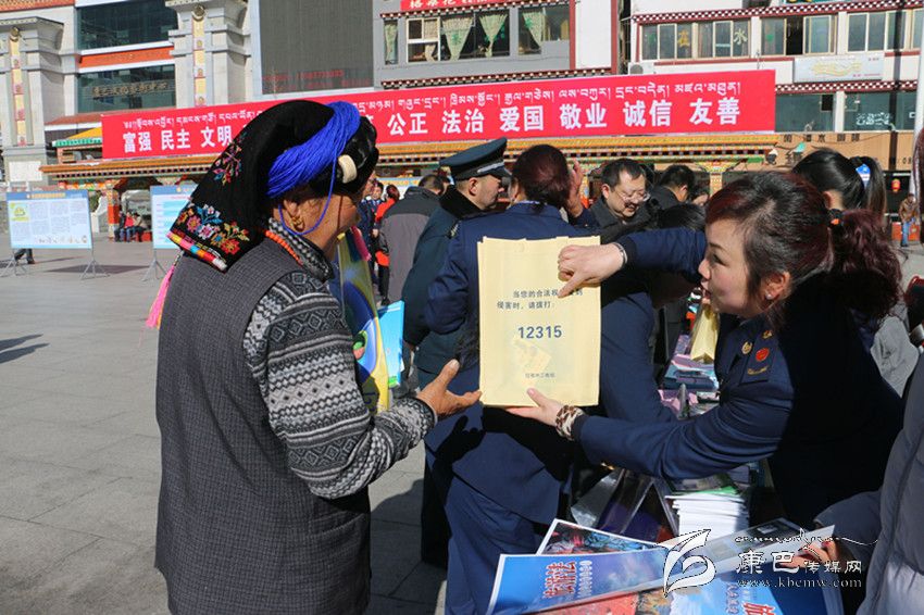 活動(dòng)現(xiàn)場,中石油公司職工開展了“中石油加油站點(diǎn)質(zhì)量、計(jì)量服務(wù)誠信經(jīng)營承諾”活動(dòng)。州工商局的工作人員現(xiàn)場為市民講解新《中華人民共和國消費(fèi)者權(quán)益保護(hù)法》的亮點(diǎn)是什么、怎樣維權(quán)等知識。州煙草公司、康定市食品藥品工商質(zhì)監(jiān)局在廣場上設(shè)立了假冒偽劣商品展示區(qū),通過現(xiàn)場講解讓消費(fèi)者提高辨假識劣的能力。圖為宣傳活動(dòng)現(xiàn)場工商部門工作人員現(xiàn)場為市民講解。