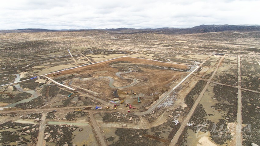 在海子山散落著數(shù)米寬巨石的曠野上,一塊有10個(gè)足球場大的圓形區(qū)域已經(jīng)成型,挖土機(jī)忙著挖出3個(gè)“品”字形、深4.5米的巨型水池。