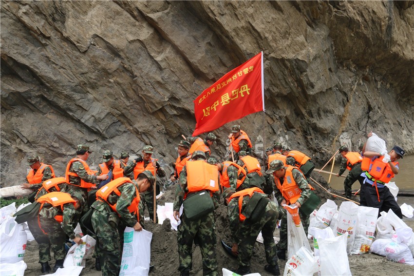 滾滾洪水無情地沖擊著路基和河堤,水位在不斷抬高,官兵迅速填裝沙袋,踩著漫過膝蓋的洪水運(yùn)往最危險(xiǎn)的地段,手抬肩抗筑起一段段鋼鐵堤壩。官兵們奮戰(zhàn)了7個(gè)多小時(shí),由于被淹沒的路基和河堤較長,高原的氣候寒冷,加之在水中浸泡時(shí)間過長,一些戰(zhàn)士腳被凍得發(fā)紫,也渾然不覺,顧不上寒冷和長時(shí)間裝填搬運(yùn)沙袋所帶來的疲憊。