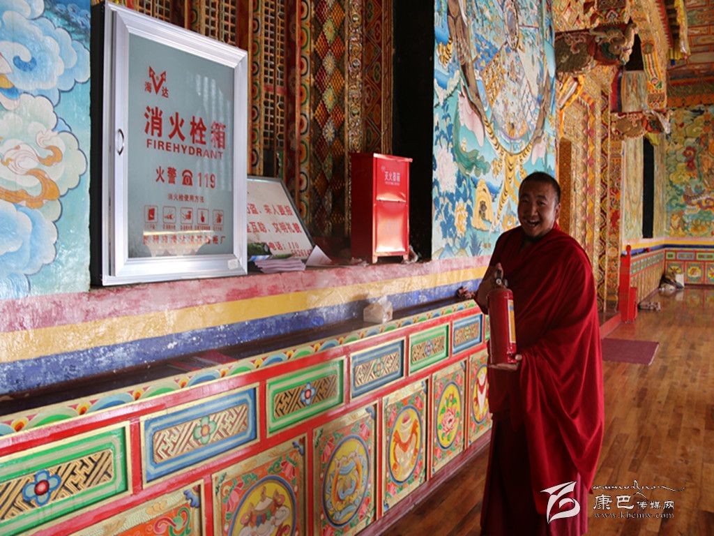 “僧人們每天在這里修行和生活,對我們僧人來說,這個廟就是我們的家,我們就是廟的主人。寺廟的防火安全我們義不容辭。”每天傍晚時分,鄉(xiāng)城縣桑披寺的義務(wù)防火隊隊長則曲迪迪便帶領(lǐng)3名隊員依次查看各經(jīng)殿堂的酥油燈、哈達、經(jīng)書之間擺放距離是否符合要求,消防器材、設(shè)施是否完好有效,各廳堂安全疏散通道是否暢通等,排查寺廟火災(zāi)安全隱患。