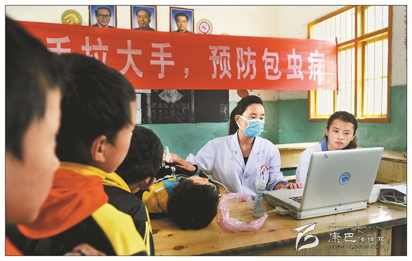 高原防控——醫(yī)務(wù)人員在預(yù)防包蟲病現(xiàn)場(chǎng)為學(xué)生檢查身體。